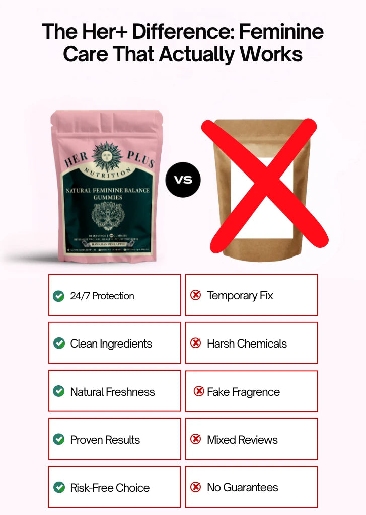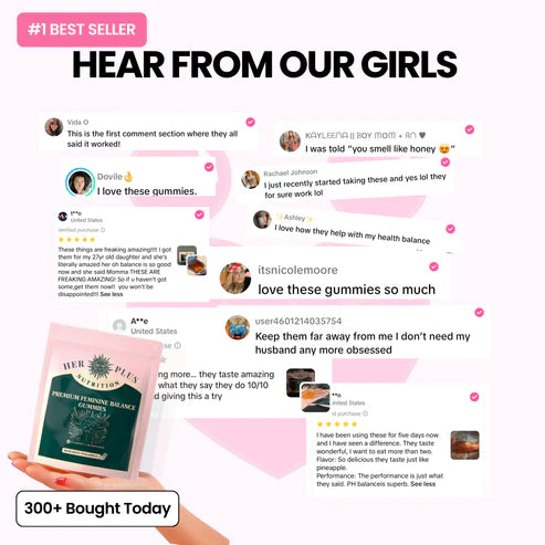 • I've always been self-conscious about my scent, but since taking Her+ Gummies, I've noticed a huge improvement. My confidence is through the roof, and I feel so much sexier. It actually works!